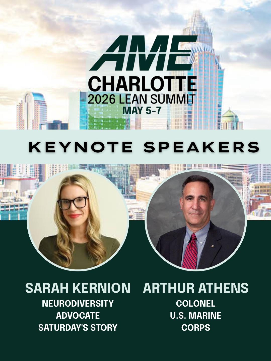Elevate excellence in the Queen City! Join AME for the AME Charlotte 2026 Lean Summit, hosted by the AME Southeastern Region. This can’t-miss event is designed to help you drive lasting change, strengthen your lean practices and lead with people-centric purpose.This year’s summit features two dynamic keynote speakers, immersive workshops and insightful tours — each focused on practical tools and strategies you can apply immediately.Connect with peers and thought leaders from industries including manufacturing, healthcare and service environments.